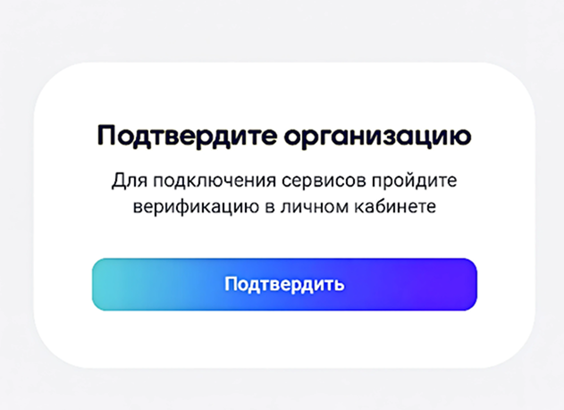 Дальше нужна верификация. Пройти её может только владелец организации.