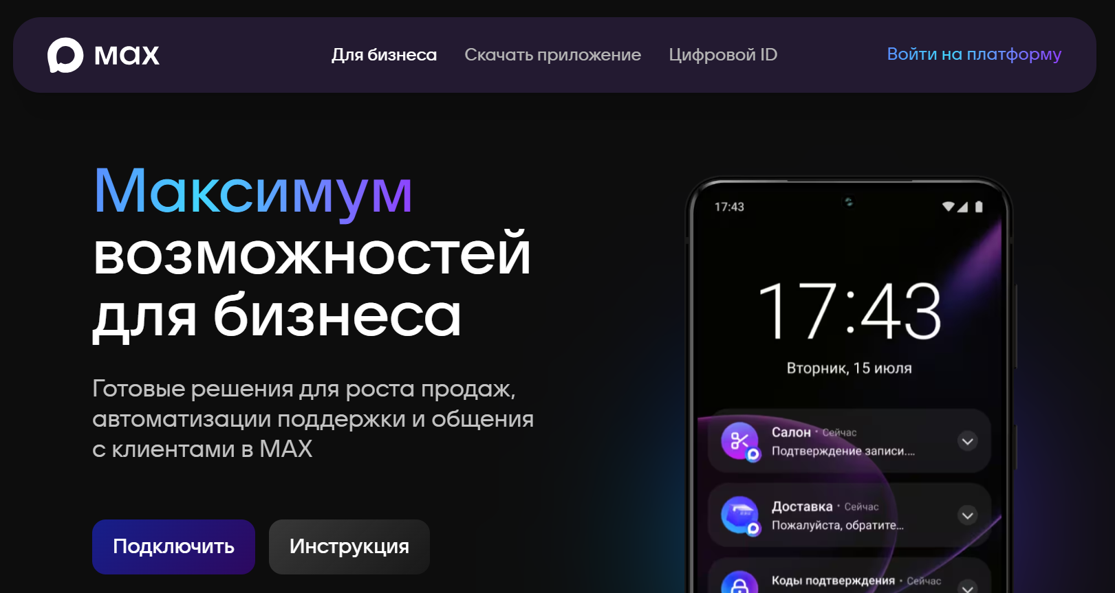 Заходите на business.max.ru — это платформа «Партнёры MAX».